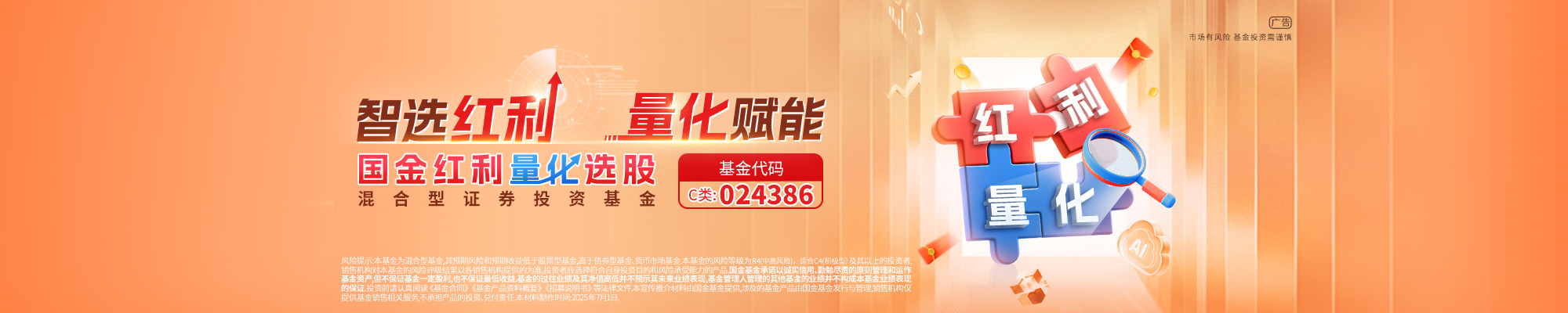 基金名称 国金红利量化选股混合型证券投资基金 基金简称 国金红利量化选股混合C 基金代码 024386 基金类型 混合型 运作方式 契约型开放式 成立日期 2025年8月26日 基金存续期 不定期 基金管理人 国金基金管理有限公司 基金托管人 平安银行股份有限公司 基金经理 马芳 投资目标 本基金主要投资于红利主题相关上市公司,通过数量化的投资方法,在严格控制投资组合风险的前提下,力争实现组合资产的长期稳健增值。 投资范围 本基金的投资范围包括国内依法发行上市的股票(包含主板、科创板、创业板、存托凭证及其他依法发行上市的股票)、港股通标的股票、债券(包括国债、金融债、央行票据、地方政府债、政府支持机构债券、政府支持债券、企业债、公司债、次级债、可转换债券(含分离交易可转债)、可交换债券、中期票据、短期融资券、超短期融资券等)、资产支持证券、债券回购、同业存单、银行存款(包括协议存款、定期存款以及其他银行存款等)、货币市场工具、股指期货、国债期货、股票期权、信用衍生品以及法律法规或中国证监会允许基金投资的其他金融工具(但须符合中国证监会相关规定)。如法律法规或中国证监会以后允许基金投资其他品种,基金管理人在履行适当程序后,可以调整上述投资品种的投资比例。